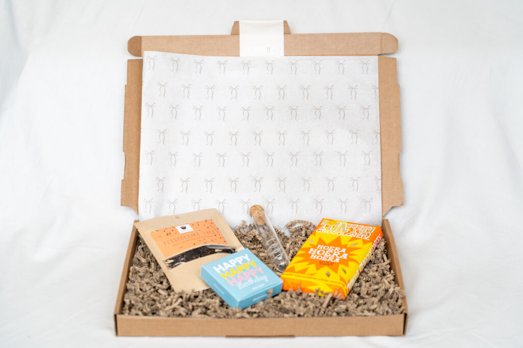 Onze brievenbuscadeaus passen door de brievenbus, zodat de ontvanger niet thuis hoeft te blijven. Elk pakket is zorgvuldig samengesteld met hoogwaardige producten, stijlvol verpakt en kan worden aangevuld met een personaliseerbare kaart voor een extra persoonlijke touch. Zo wordt iedere verrassing een klein moment van plezier.