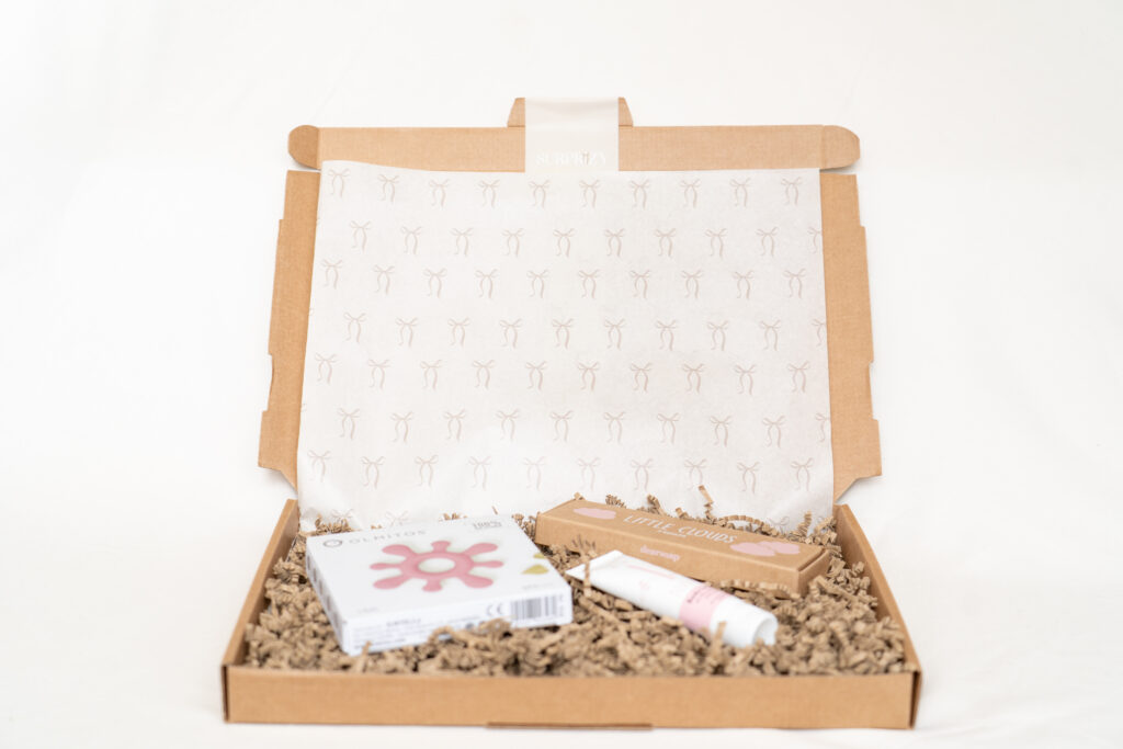 “Zo klein, zo bijzonder, zo geliefd” Bijtring roze NAÏF body lotion Little Clouds wolken zeep – roze