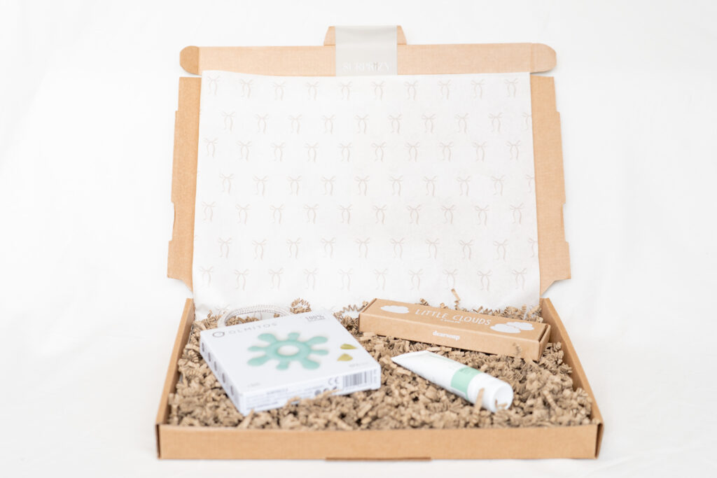“Zo klein, zo bijzonder, zo geliefd” Bijtring groen NAÏF shampoo Little Clouds wolken zeep – wit