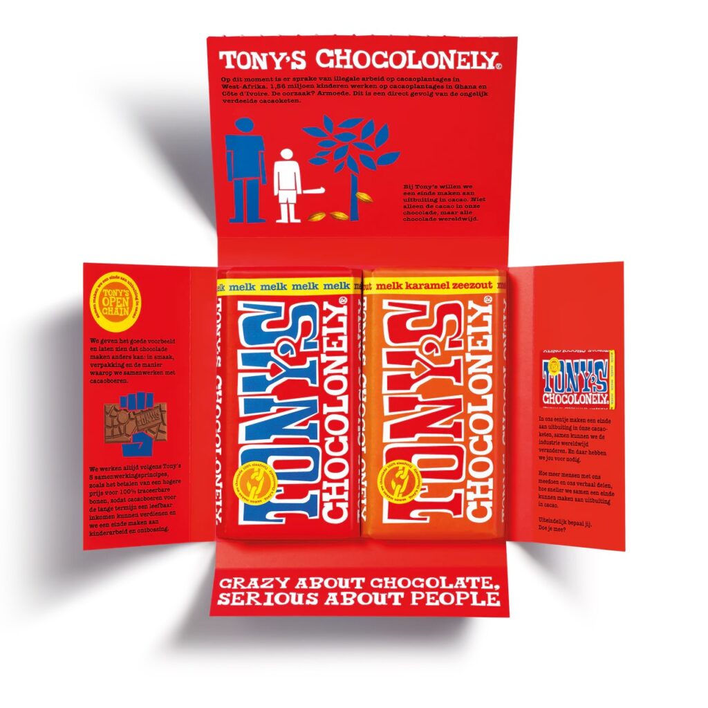 Chocolade cadeaupakket - Bedankt Wat je ook te zeggen hebt, je zegt ’t met een reep. Da’s beter dan een mond vol woorden. Wij hebben 'm al mooi verpakt in deze Tony's Chocolonely cadeaudoos. Wie wil dit chocoladecadeau nou niet op z'n deurmat? In deze cadeaudoos zit: 1x Melk Karamel Zeezout Chocoladereep 1x Melk Chocoladereep