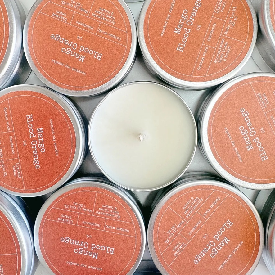 Bon Babef - Met de hand vervaardigd van 100% Europese sojawas, een katoenen lont en luxe geuroliën. Verpakt in een elegant aluminium blikje – lichtgewicht, herbruikbaar en perfect voor gezellige momenten, waar je ook bent. • Topnoten: Aldehyde, bloedsinaasappel, korianderblaadjes • Hartnoten: Mangosap, roze grapefruit, mandarijnenschil • Basisnoten: Cassis, sappige ananas, perzikpit